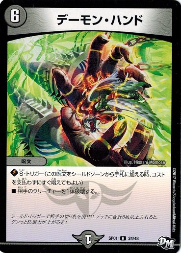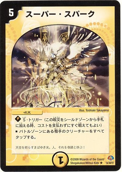 自分のシールドがブレイクされたとき、マナを消費せずにすぐ使うことのできる能力です。その手札に加わったシールドだったカードを相手ターン中にもかかわらずタダで使えるので、ピンチを救う頼もしい効果になること間違いなし!クリーチャーなら即座にバトルゾーンに出て活躍できるし、呪文ならその強力な効果をブッ放すことができます。S・トリガーがついているカードは基本的にピンチを打開する効果を持つものが多いので、DMプレイヤーならS・トリガーに命を救われたことがあるのも1度や100度ではないはず!